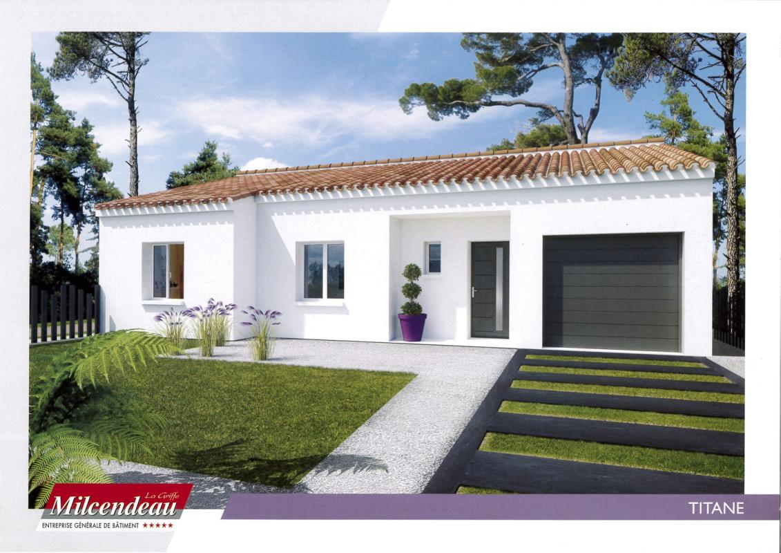 Sur ce terrain, nous vous proposons le modèle Titane, maison de 87 m2 offrant 3 chambres et un garage de 16.35 m2.