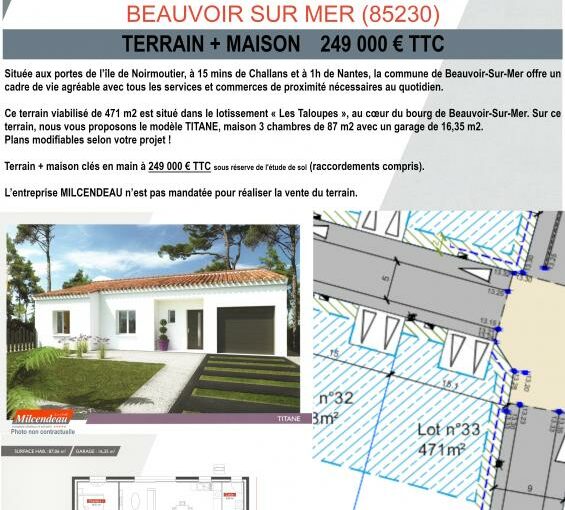 L’entreprise MILCENDEAU n’est pas mandatée pour réaliser la vente du terrain.