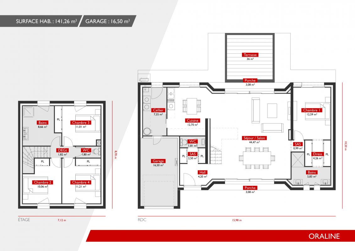 o Surface Habitable : 141 m² (modifiable selon vos préférences).