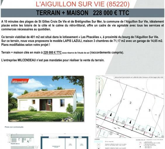 L’entreprise MILCENDEAU n’est pas mandatée pour réaliser la vente du terrain.